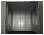 Wisconsin Corp. walk-in oven model EBO-88-8E, 97"W x 97"H x 96"L work area, double door opening, aluminized steel interior, combination air-flow, Eurotherm temperature controls, 480V, 3PH, 84KW, solid state element power control, 600 CFM powered exhaust, purge timer, mfg. 2020, like new.